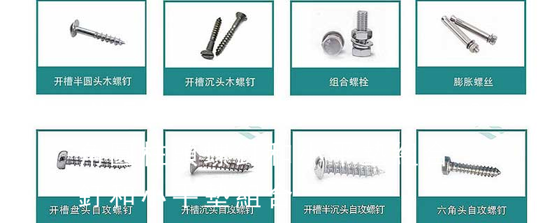 內六角圓柱頭螺絲、內六角沉頭螺絲、半圓頭內六角螺絲、內六角圓柱頭軸肩螺絲、塞打螺絲、梅華槽螺絲、內六角緊定螺絲、一字緊定螺絲、方頭緊定螺絲、滾花頭螺絲、蝶形螺絲、拇指螺絲、自攻尖尾螺絲、自攻平尾螺絲、自攻割