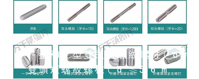 GB5779.1 緊固件表面缺陷螺栓,螺釘和螺柱一般要求 GB5779.3 緊固件表面缺陷螺栓,螺釘和螺柱特殊要求 GB90 緊固件驗收檢查,標志與包裝 GB1237 緊固件的標記方法 雙頭螺栓標準GB-T 898 雙頭螺栓標準規定了螺紋直徑為M2~M56, 不一定一樣,分三種情況,可查閱該標準。1.兩端均為粗牙普通螺紋,d=10mm、l=50mm、性能等級為4.8級、不經表面處理、B型、bm=1.5d的雙頭螺柱的標記:螺柱GB/T 899 M10×50 2.旋入機體一端為粗牙普通螺紋,旋