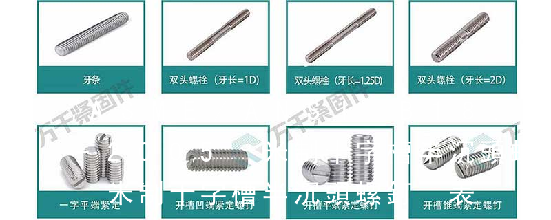 十字槽沉頭螺釘也屬于精密螺絲,一般市場上常用的都是比較小的規格型號尺寸。沉頭螺釘規格為M2,M3,M4,M5,M6,M8。這個指的是沉頭螺釘的直徑大小。沉頭螺釘長度有4,5,6,8,10,12,14,16,20,25,30,35,4 1.開槽螺釘2.十字槽螺釘3.內六角螺釘4.內六角花形半沉頭螺釘5.內六角花形盤頭螺釘6.內六角花形圓柱頭螺釘7.內六角沉頭螺釘8.內六角圓柱頭頭螺釘9.內六角平圓頭螺釘10.十字頭螺釘2.4.3 緊定螺釘1.開槽錐端緊定螺釘2.開槽平端