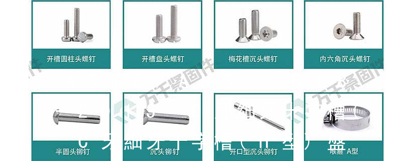 1)開槽普通螺釘多用于較小零件的連接。它有盤頭螺釘、圓柱頭螺釘、半沉頭螺釘和沉頭螺釘。盤頭螺釘和圓柱頭螺釘的釘頭強度較高,瑁在普通的部件連接上;半沉頭螺釘的頭部呈弧形,安裝后它的頂端略外露,且美觀光滑,一般