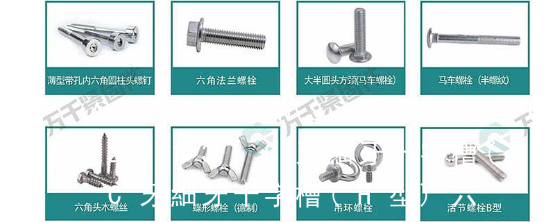 自切自攻螺釘有以下幾種型式:十字槽盤頭自切自攻螺釘,十字槽沉頭自切自攻螺釘。十字槽半沉頭自切自攻螺釘,六角頭自切自攻螺釘。3、自擠自攻螺釘(自攻鎖緊螺釘)自擠自攻螺釘的螺紋一般為機螺紋,很少采用自攻螺紋。在扳擰 B:球面圓柱頭; C:圓柱頭; F(K):沉頭; H:六角頭;HW:六角頭帶墊圈; O:半沉頭; P:平元頭; R:半元頭;PW:平元頭帶墊圈; T:大扁頭; V:蘑菇頭;④ 螺釘牙型 A:自攻尖尾(日標第1種)疏