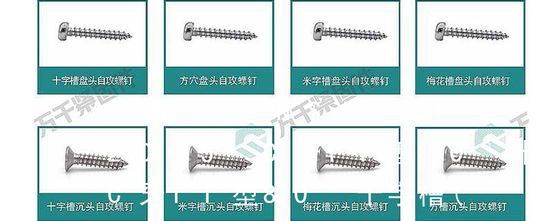 六角法蘭螺栓 Carriage bolt 馬車螺栓 Square head bolt方頭螺栓 Flat countersink square neck bolts 沉頭方頸螺栓 Flat counter sunk nib bolts 沉頭帶榫螺栓 Cross recessed pan head tapping screws 十字槽盤頭自攻螺釘 自攻螺釘選用通常的規則:自攻為4個螺距,機械螺釘為3個螺距,這是最小的旋合長度,按照實驗的條件會有所加長。每一個自攻螺釘都是由頭部、桿部和桿部末端三部分組成的。每一個自攻螺釘的構成都有四大要素:頭部形狀、扳
