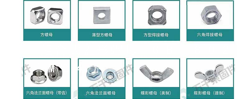 方螺母 C級 GB 39-88 六角螺母 C級 GB /T41-2000 六角厚螺母 GB 56-88 蝶形螺母 GB 62-88 環形螺母 GB 63-88 組合式蓋形螺母 GB 802-88 球面六角螺母 GB 804-88 扣緊螺母 GB 805-88 滾花高 GB/T 802.1 組合式蓋形螺母 GB/T 802.2 六角蓋形螺母 焊接型 GB/T 802.3 六角法蘭面蓋形螺母 焊接型 GB/T 802.4 六角低球面蓋形螺母 焊接型 GB/T 802.5 非金屬嵌件六角鎖緊蓋形螺母 焊接型 GB/T 923