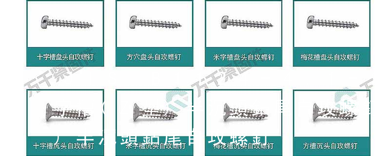 1.機螺釘 2.自攻螺釘 3.鉆尾螺釘 4.墻板釘 5.纖維板釘 6.木螺釘7.六角木螺釘 8.不脫出螺釘 9.組合螺釘 10.微型螺釘 11.家具螺釘 12.電子螺釘 頭型 :1.六角頭(hexagon head) 2.六角頭法蘭面(hexagon head w