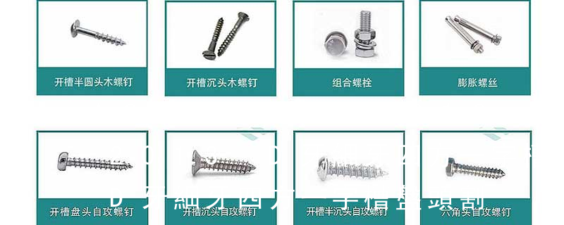 (鐵板牙自攻螺絲) B-2: Plastic Tapping Screw. (塑膠用,自攻螺絲) C: Wooden Screw : 木工螺絲 D: Drywall Screw :水泥墻螺絲 E: Self Drilling Screws鉆尾螺絲(不銹鋼鉆尾螺絲,復合材料鉆尾螺絲) F:膨脹螺絲,四片膨脹螺絲又 3.螺釘:也是由頭部和螺桿兩部分構成的一類緊固件,按用途可以分為三類:機器螺釘、緊定螺釘和特殊用途螺釘。機器螺釘主要用于一個緊定螺紋孔的零件,與一個帶有通孔的零件之間的緊固連接,不需要螺母配合(這種連接形式稱為螺釘連接,也屬于
