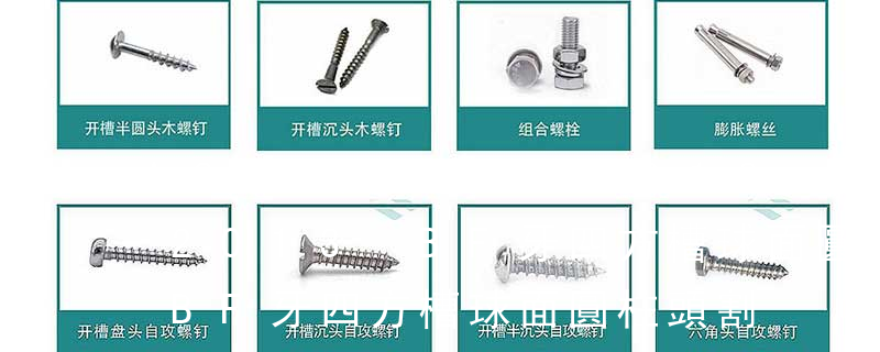 1.機螺釘 2.自攻螺釘 3.鉆尾螺釘 4.墻板釘 5.纖維板釘 6.木螺釘7.六角木螺釘 8.不脫出螺釘 9.組合螺釘 10.微型螺釘 11.家具螺釘 12.電子螺釘頭型:1.六角頭(hexagon head) 2.六角頭法蘭面(hexagon head with flange) 3. (鐵板牙自攻螺絲) B-2: Plastic Tapping Screw. (塑膠用,自攻螺絲) C: Wooden Screw : 木工螺絲 D: Drywall Screw :水泥墻螺絲 E: Self Drilling Screws鉆尾螺絲(不銹鋼鉆尾螺絲,復(fù)合材料鉆尾螺絲) F:膨脹螺絲,四片膨脹螺絲又