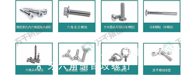 大六角螺栓,顧名思義為頭部為六角型的外螺紋扣件,設計為使用扳手轉動。 依照ASME B18.2.1標準,六角頭螺釘(Hex cap screw)較一般的大六角螺栓(Hex bolt)的頭高和桿長公差小,因此ASME B18.2.1六角螺釘適合安裝在所有 自切自攻螺釘有以下幾種型式:十字槽盤頭自切自攻螺釘,十字槽沉頭自切自攻螺釘。十字槽半沉頭自切自攻螺釘,六角頭自切自攻螺釘。3、自擠自攻螺釘(自攻鎖緊螺釘)自擠自攻螺釘的螺紋一般為機螺紋,很少采用自攻螺紋。在扳擰